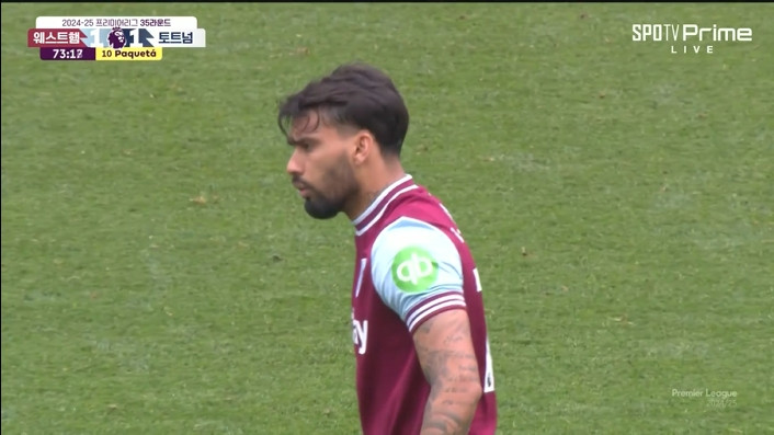 直播吧05月04日讯英超第35轮,热刺客战西汉姆联。比赛第73分钟,帕奎塔中场铲倒摩尔染黄,主裁判奥利弗果断掏黄牌,染黄后的帕奎塔对判罚颇有微词啊。